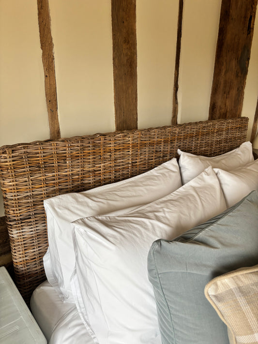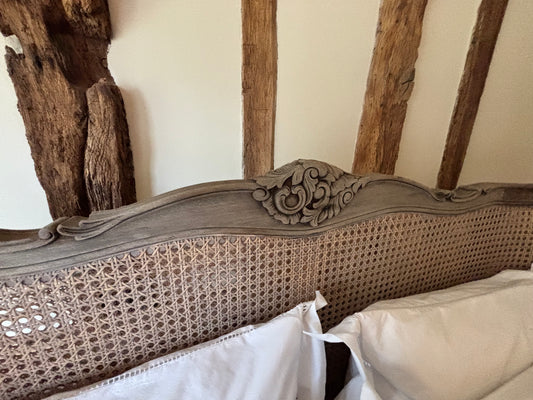 French Bed Company Kingsize Bed With Rattan Sculped Headboard