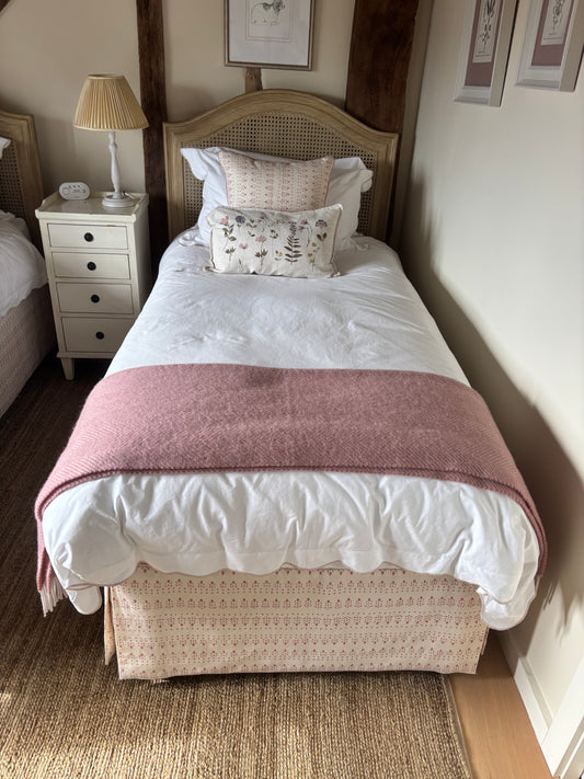 Pair of Coach House Single Divan Beds With Pink and Cream Valences with drawers