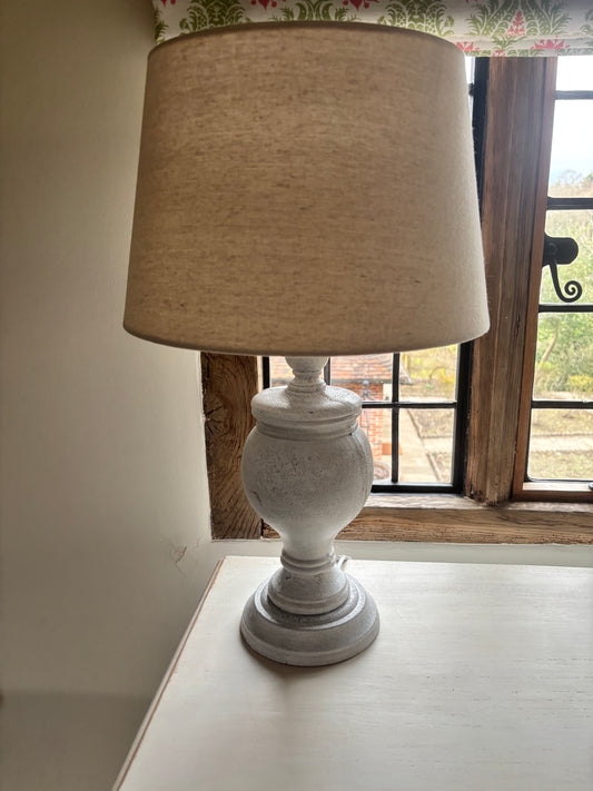Chosen by Jessica White Urn Base with Beige Lamps
