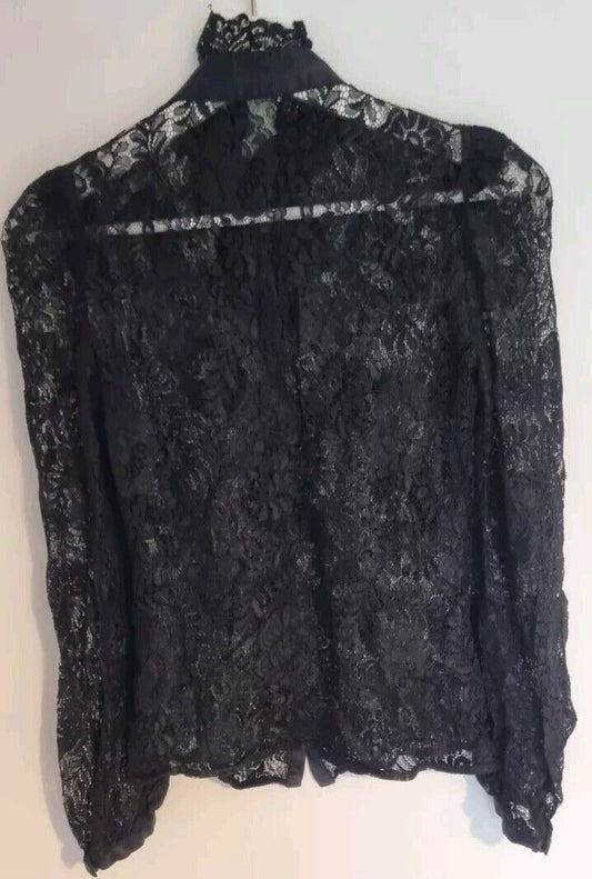 Karen Millen Women's Black Lace Long Sleeved High Neck Blouse Size 6