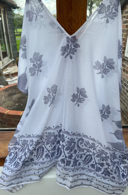 Juliet dunn 100% Cotton Poncho kaftanWhite Blue One Size