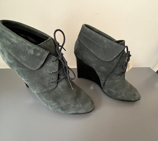Topshop Women's Green Silk Feel, High, Open Toed Ankle Boots Size 36