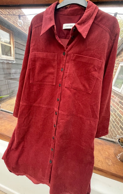 The Cefinn Burgundy Corduroy Dress is a stylish and versatile option for casual occasions. With a collared neckline, long sleeves, and button closure, this midi-length dress in size 16 features a flattering fit and flare style. Made from corduroy fabric, it is machine washable for easy care. The rich burgundy colour adds a touch of sophistication to your wardrobe, making it a timeless piece from the trusted brand Cefinn.Elise