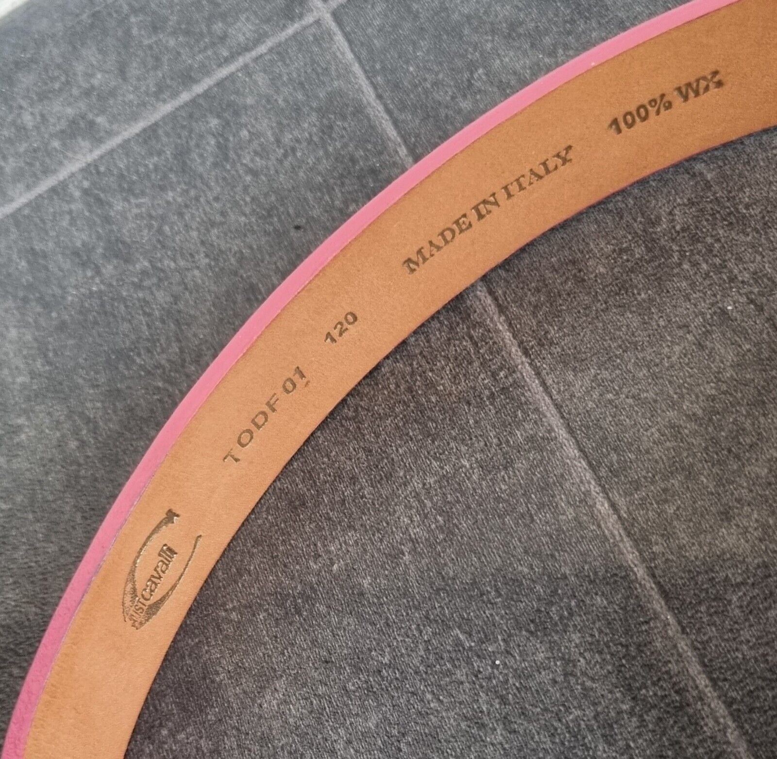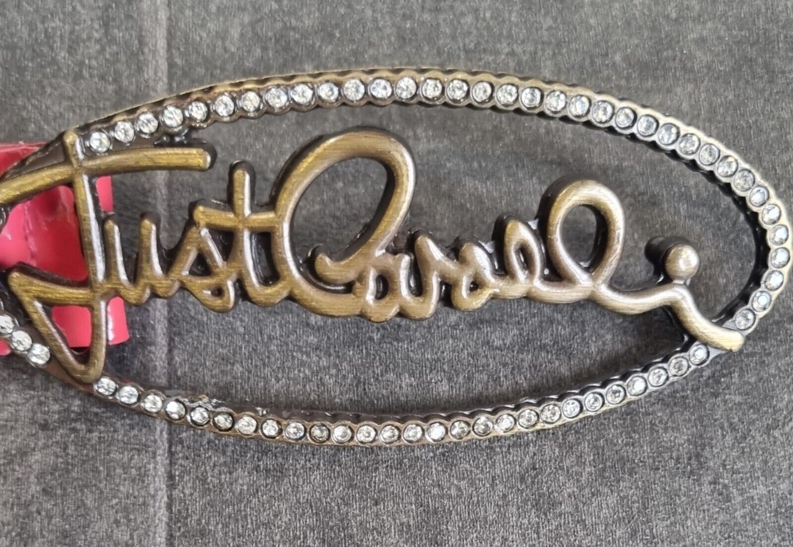 Just Cavalli Women's Pink Leather Patent Logo Buckle Belt, With Box